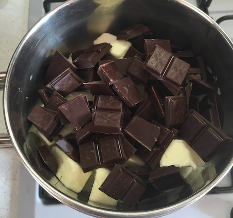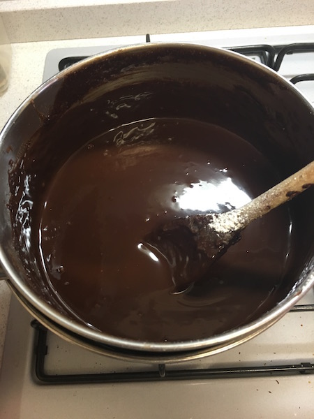 - Preparate la glassa, sciogliendo il cioccolato a bagnomaria, aiutandovi in questo processo unendo un pò di latte e dell’acqua.