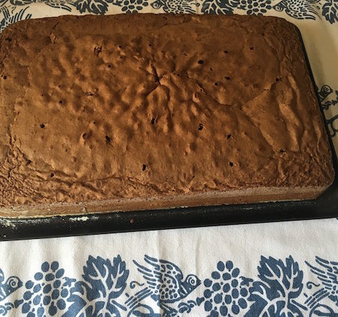 - Bagnate l’interno del Pan di Spagna con il succo d’albicocca.