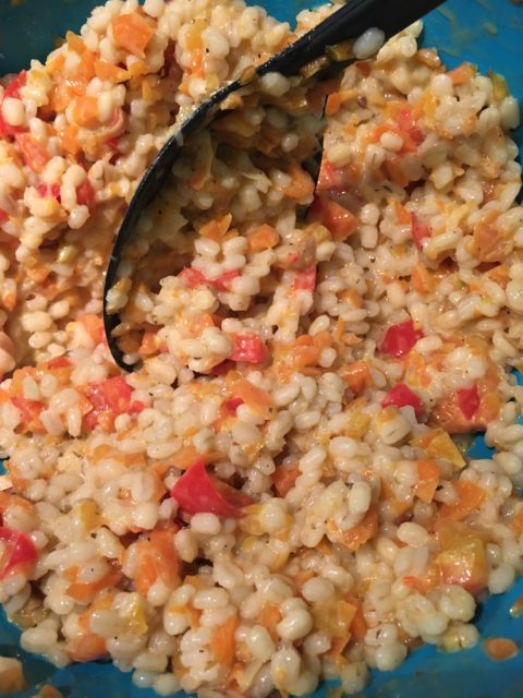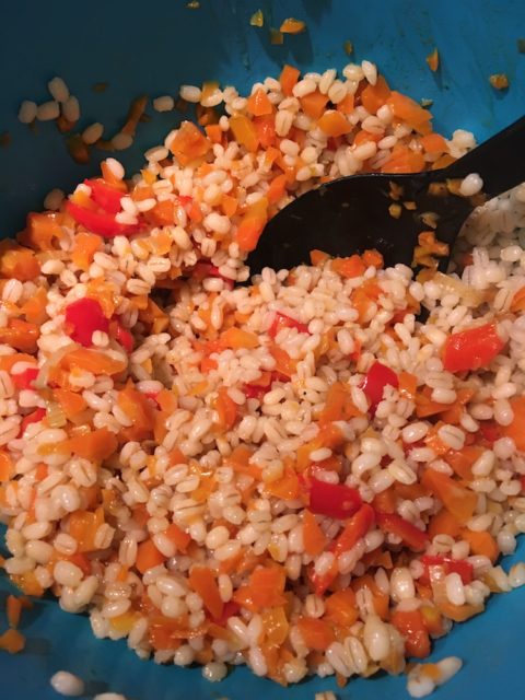 - Terminata la cottura dell’orzo e delle verdure, raccogliete tutto il una ciotola e lasciate intiepidire leggermente.