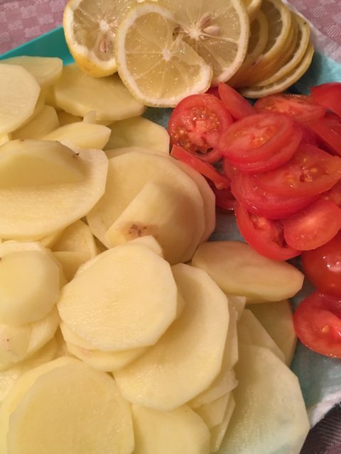 - Tagliate a fettine sottili sia i pomodorini che il limone e mettete sempre da parte.