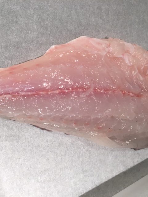 - Ponete un foglio di carta forno, poi ponete un filetto con la pelle verso il basso.