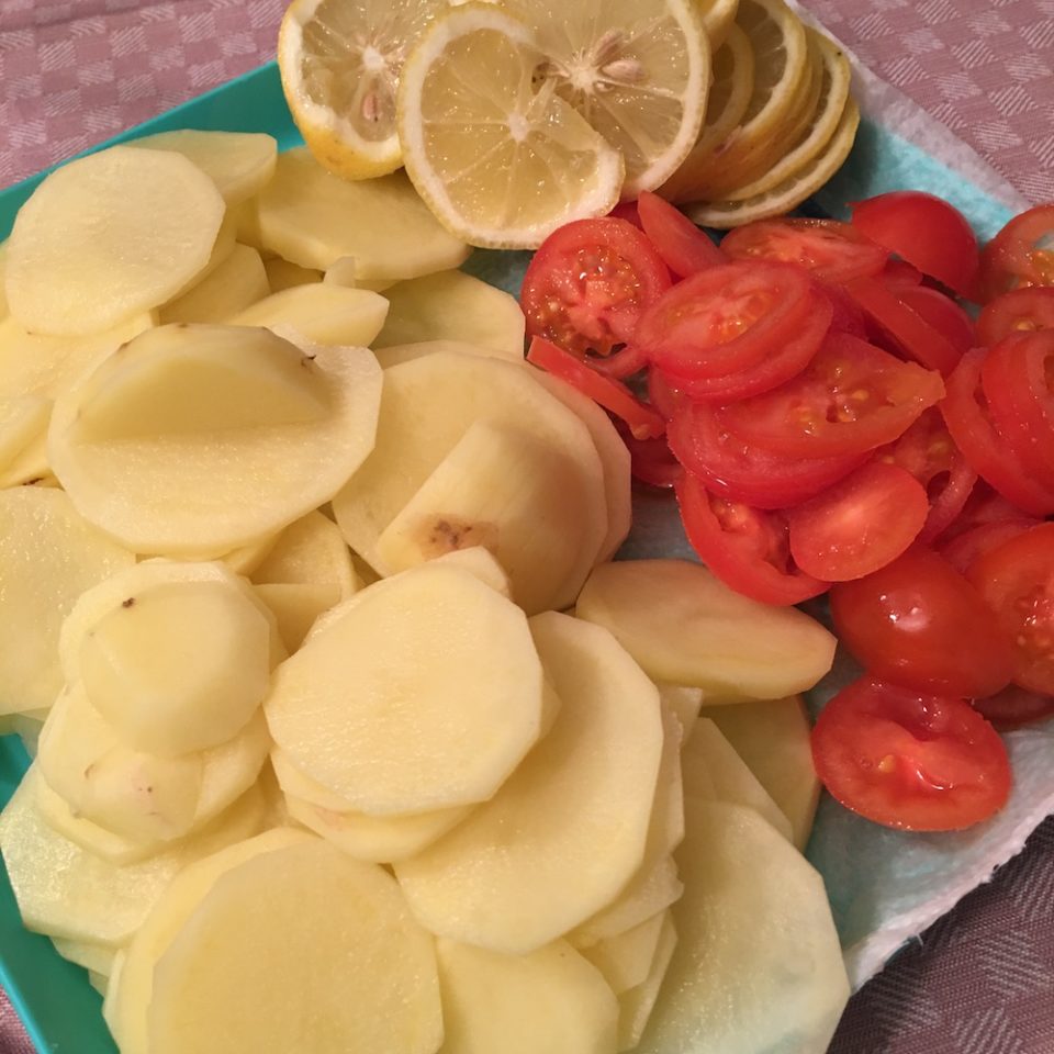 - Tagliate a fettine sottili sia i pomodorini che il limone e mettete sempre da parte.