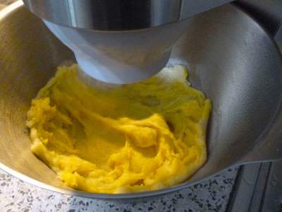 - Fate lo stesso procedimento con il terzo uovo. Sarà l’impasto a decidere se servirà anche il quarto uovo. Si dovrà ottenere la consistenza della crema pasticciera. Se l’impasto sarà molto più sodo di una crema vorrà dire che dovrete aggiungere anche il quarto uovo, se invece sarà troppo liquido, vorrà dire che sarà stato pregiudicato il risultato finale e dovrete ricominciare (ricordate quindi di incorporare le uova una alla volta).